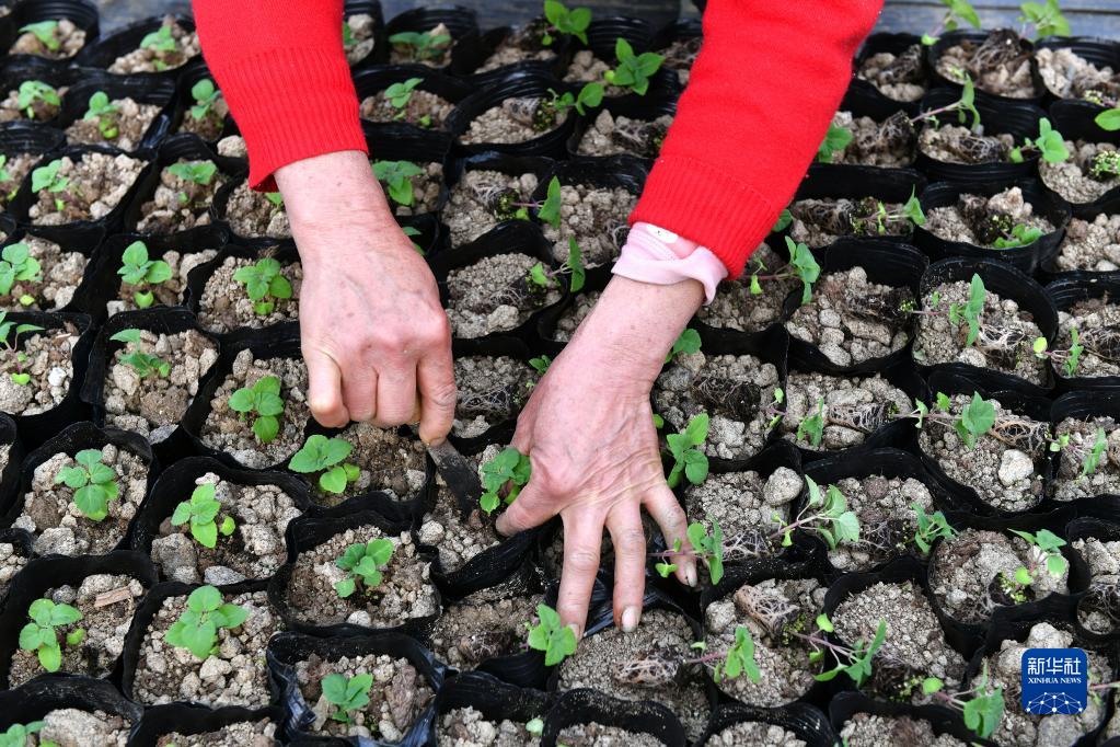 2月27日,湖北省宜昌市秭歸縣茅坪鎮陳家壩村村民在花卉苗木基地栽植苗木。
