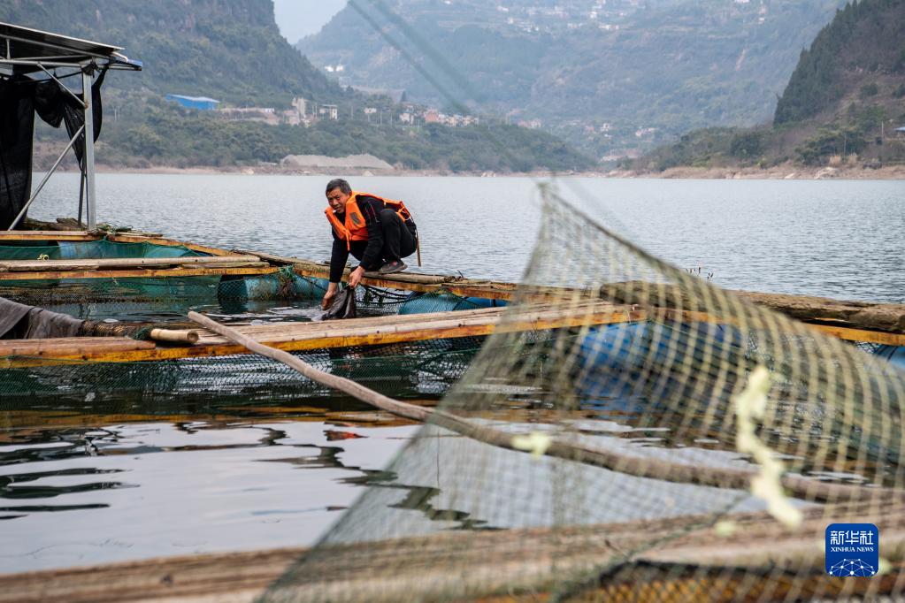2月25日,三峽庫區珍稀魚(yú)類(lèi)馴養基地工作人員在查看長(cháng)江鱘的生長(cháng)情況。
