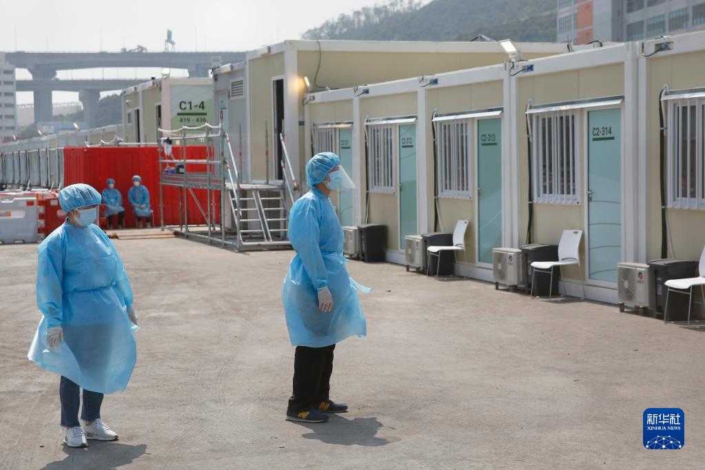 3月2日,工作人員在中央援港青衣方艙醫院值守。