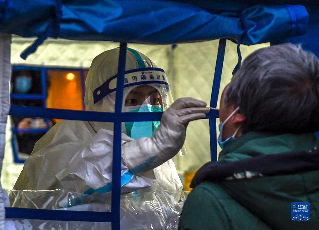 3月4日清晨,在呼和浩特市回民區攸攸板鎮賽馬場(chǎng)北路社區某核酸采樣點(diǎn),工作人員為群眾做核酸采樣。