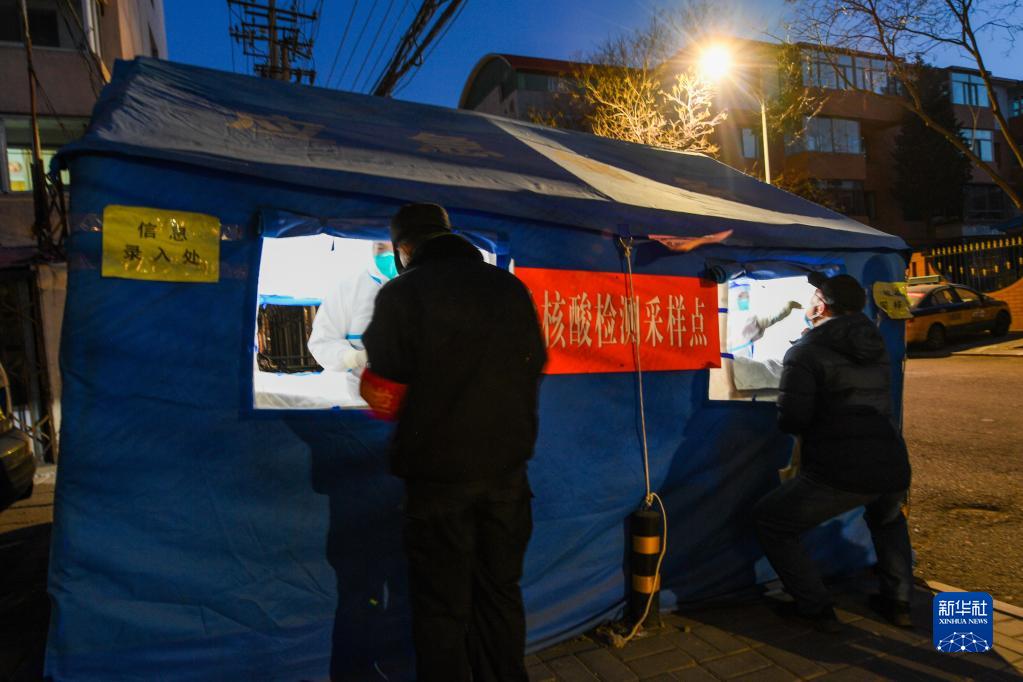 3月4日清晨,在呼和浩特市新城區星火巷社區臨時(shí)核酸檢測點(diǎn),人們在接受核酸采樣。