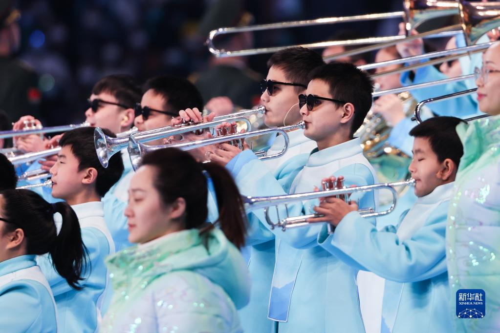 圖為在北京2022年冬殘奧會(huì )開(kāi)幕式上,重慶市特殊教育中心揚帆管樂(lè )團參演團隊演奏國際殘奧委會(huì )會(huì )歌(3月4日攝)。