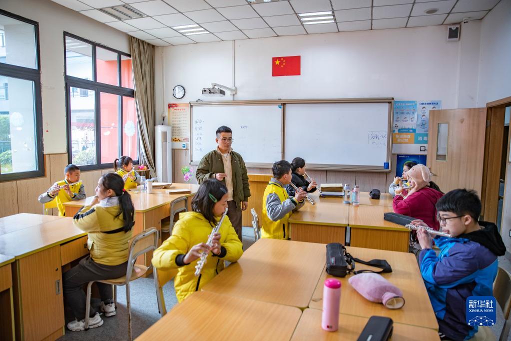 圖為在重慶市特殊教育中心,揚帆管樂(lè )團老師李忻念指導樂(lè )團長(cháng)笛聲部學(xué)生進(jìn)行國際殘奧委會(huì )會(huì )歌《未來(lái)贊美詩(shī)》的分聲部訓練(1月11日攝)。