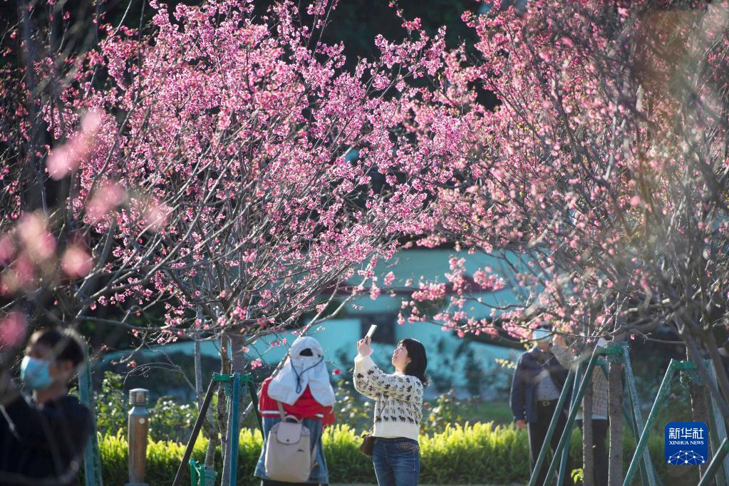 近日,澳門(mén)氹仔龍環(huán)葡韻的櫻花盛開(kāi),春意盎然。