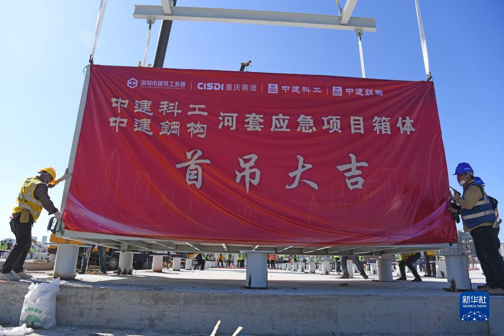 中央援港應急醫院項目完成首個(gè)集成式箱體吊裝