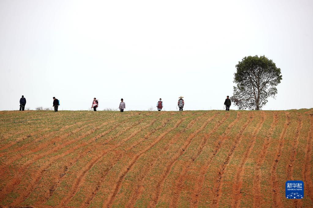 3月9日,村民在貴州省黔東南苗族侗族自治州丹寨縣興仁鎮擺泥村管護中藥材太子參。