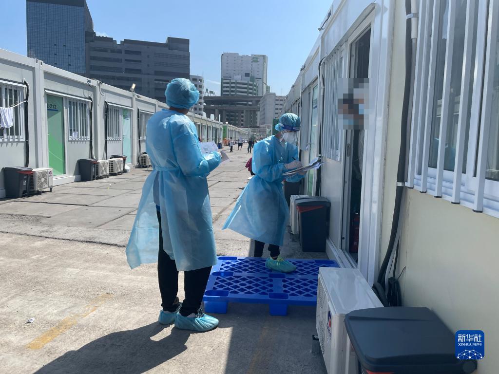 青衣方艙醫院工作人員上門(mén)服務(wù)(3月10日拍攝,手機照片)。