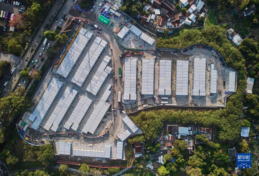 這是3月12日拍攝的中央援建香港粉嶺社區隔離設施(無(wú)人機照片)。