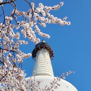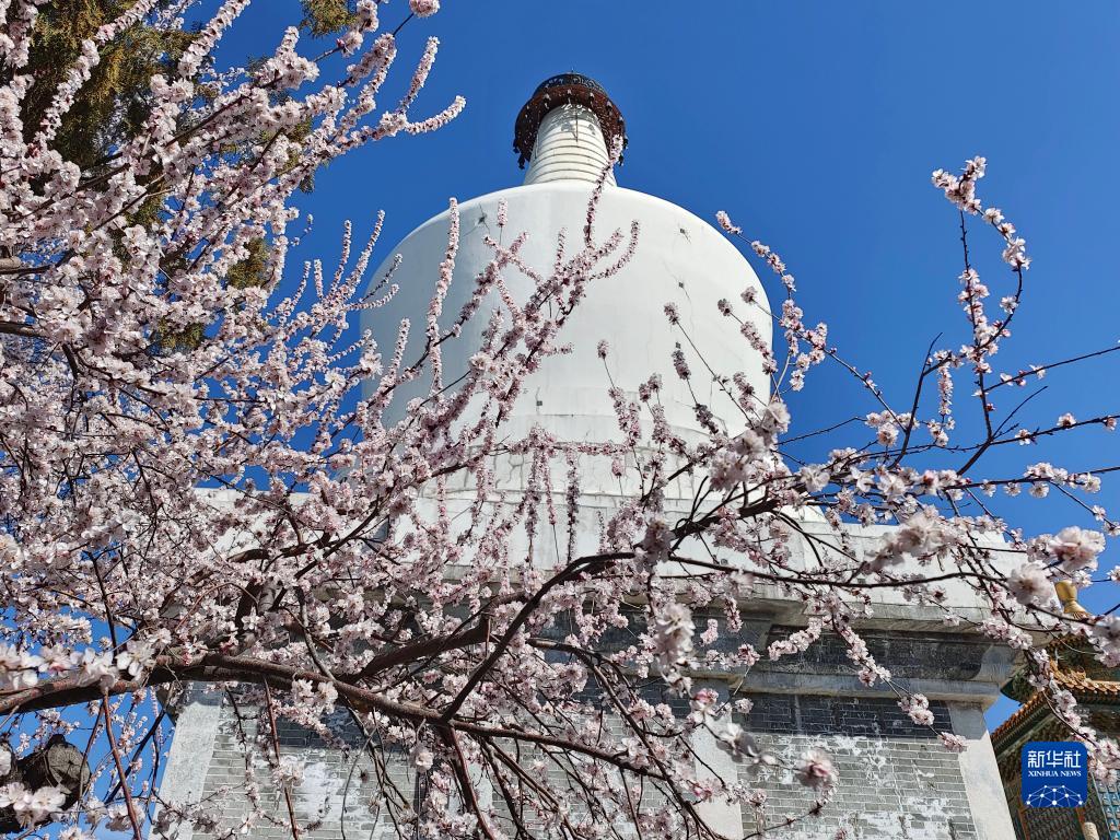 春暖大地,北京北海公園白塔旁的山桃花盛開(kāi),吸引不少游客前來(lái)欣賞。