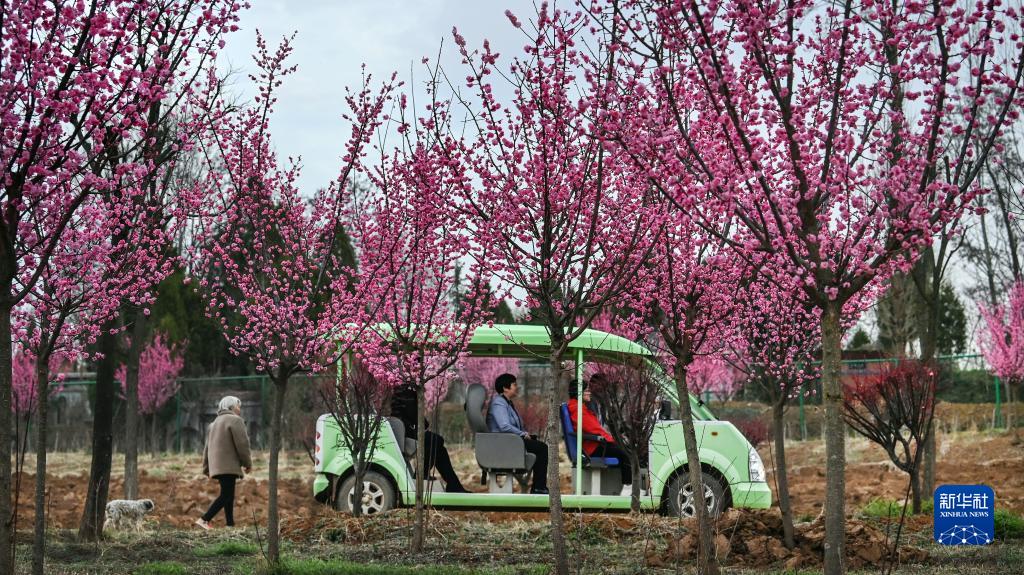 3月14日,游客在洛南縣永豐鎮一家旅游景區游玩。