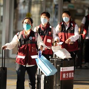 3月14日,香港有關(guān)負責人到深圳灣口岸迎接醫療隊的到來(lái)。