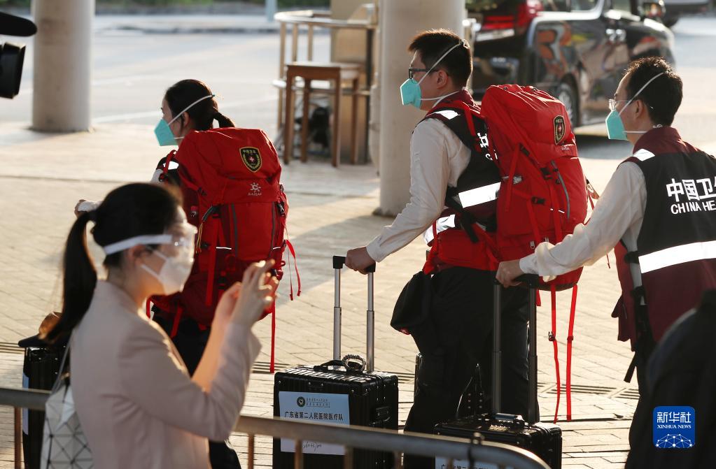 3月14日傍晚,應香港特區政府請求,由廣東省組派的內地援港醫療隊共75人,經(jīng)深圳灣口岸抵達香港。