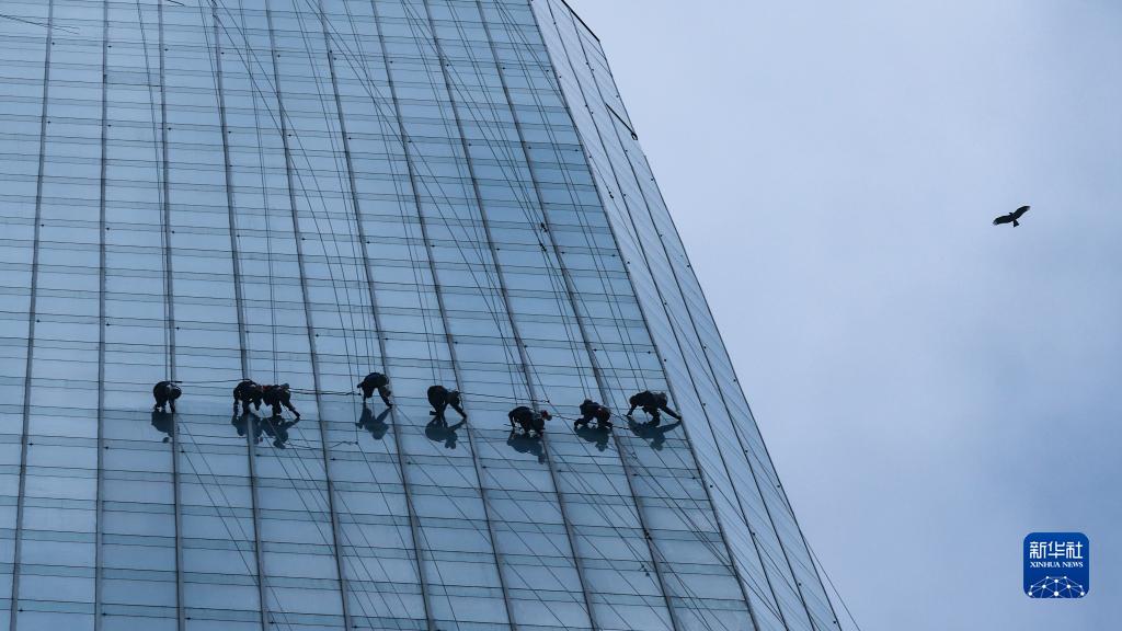 近日,高度335米的貴陽(yáng)國際貿易中心雙子塔迎來(lái)今年的首次清洗。8名“蜘蛛人”從塔巔垂直而下開(kāi)展高空作業(yè),將耗時(shí)20天左右才能完成清洗。