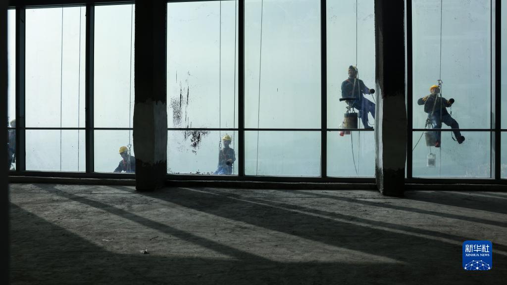 近日,高度335米的貴陽(yáng)國際貿易中心雙子塔迎來(lái)今年的首次清洗。8名“蜘蛛人”從塔巔垂直而下開(kāi)展高空作業(yè),將耗時(shí)20天左右才能完成清洗。