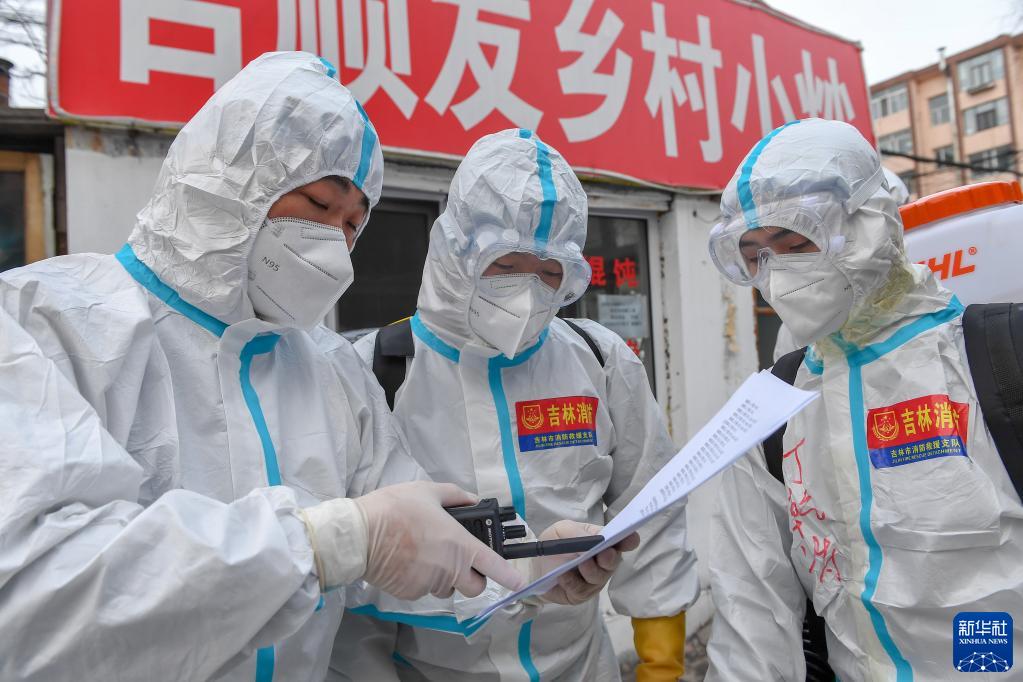 3月18日,吉林市消防救援支隊黨員先鋒突擊隊隊員在進(jìn)行社區消殺工作安排。
