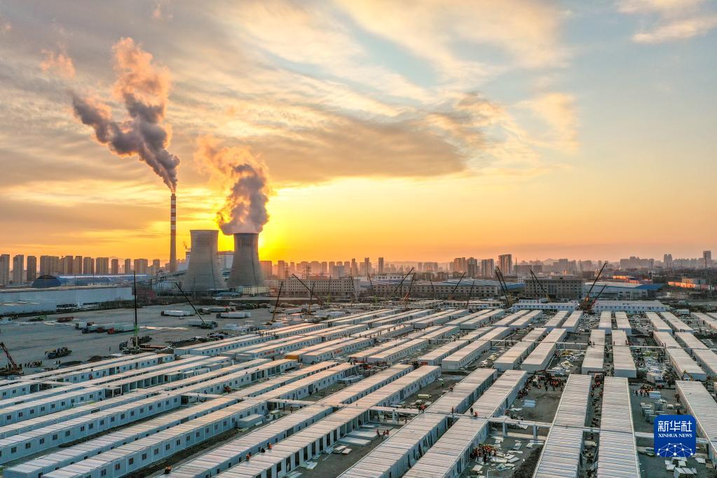 這是3月20日傍晚拍攝的吉林市高新南區隔離方艙建設現場(chǎng)(無(wú)人機照片)。