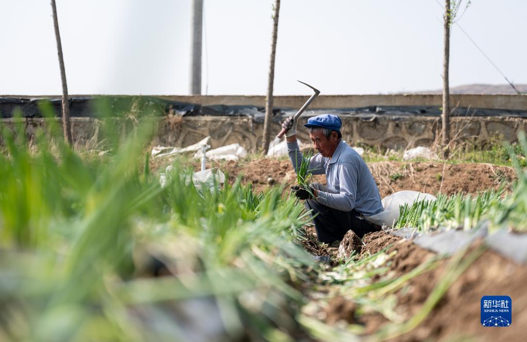 3月21日,農民在魯甸縣卯家灣安置區香蔥產(chǎn)業(yè)基地內勞作。