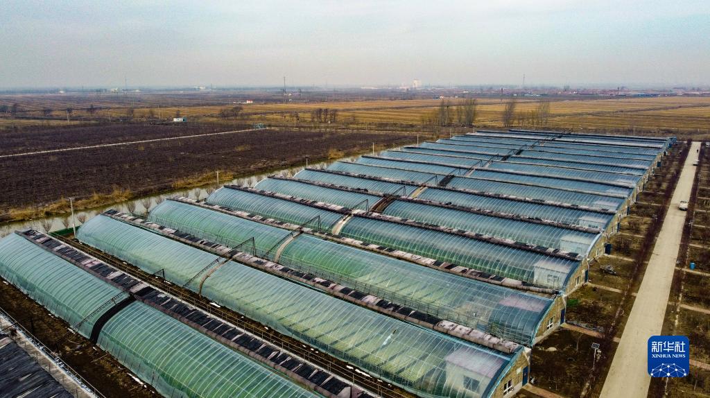 這是3月21日在天津市寧河區百利蔬菜種植基地拍攝的用于水培菜種植的高標準溫室大棚(無(wú)人機照片)。新華社記者 孫凡越 攝