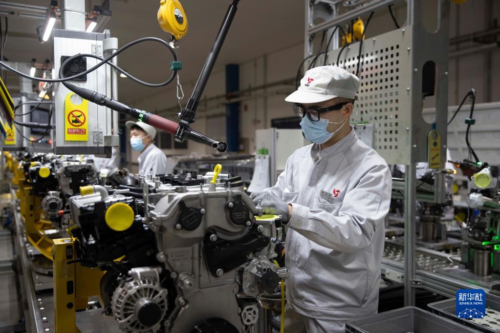 3月23日,工人在哈爾濱東安汽車(chē)動(dòng)力股份有限公司生產(chǎn)車(chē)間內進(jìn)行裝配作業(yè)。