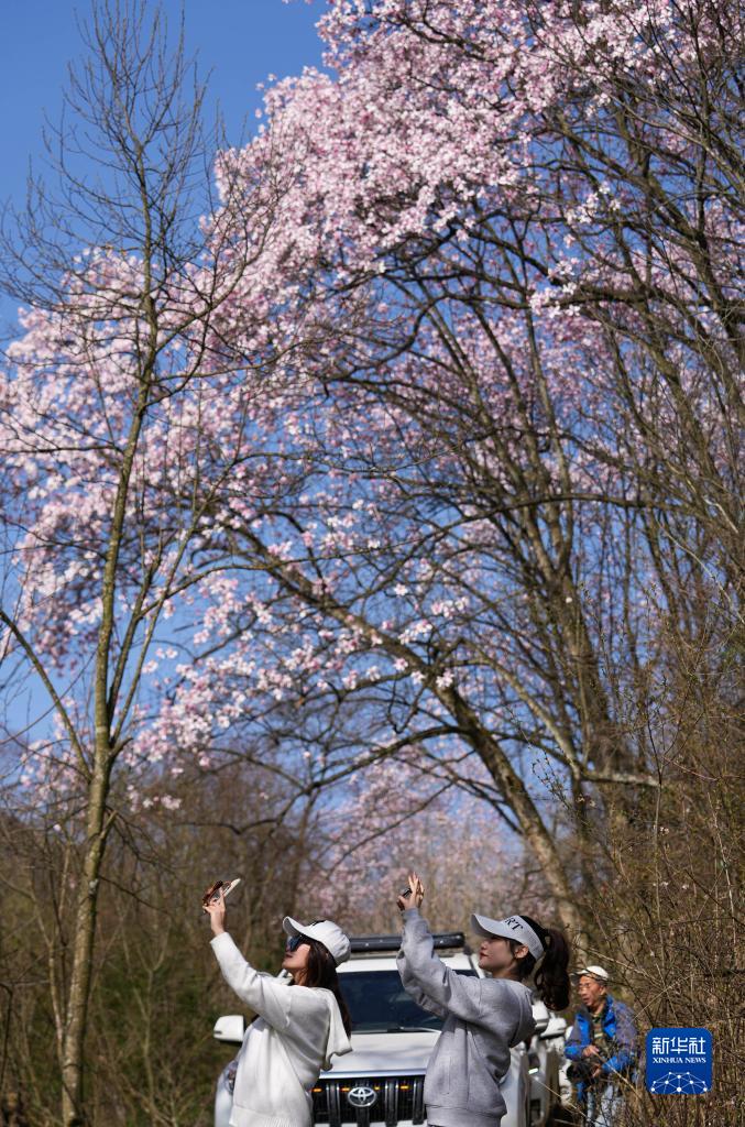 江油市大康鎮戴天山村辛夷花盛開(kāi),游人在花林間拍攝(3月23日攝)。