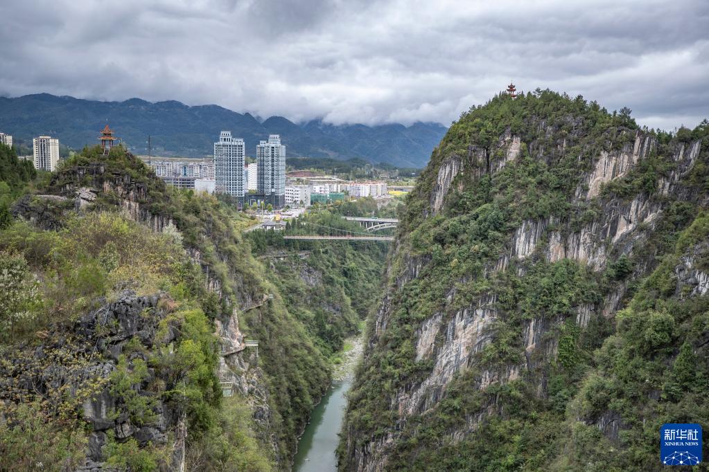 這是3月22日拍攝的重慶市黔江區城市大峽谷景區風(fēng)光。