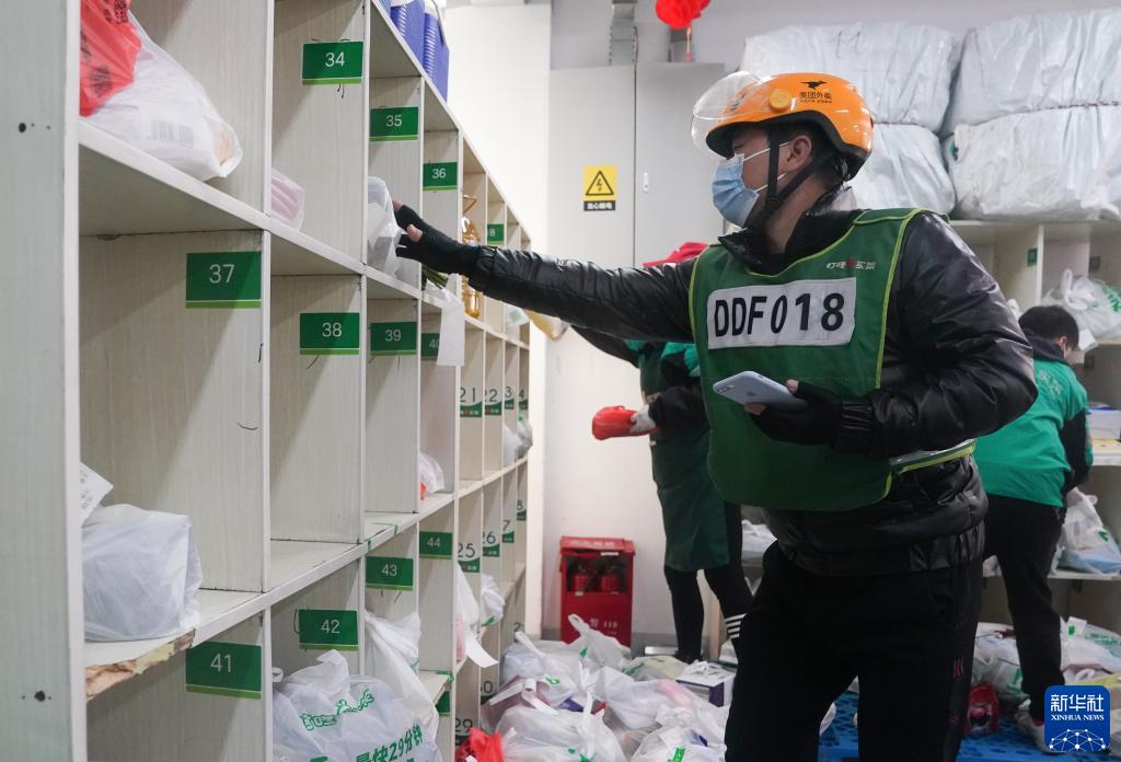 3月26日,網(wǎng)絡(luò )購物平臺企業(yè)配送員在上海某前置倉內取貨。