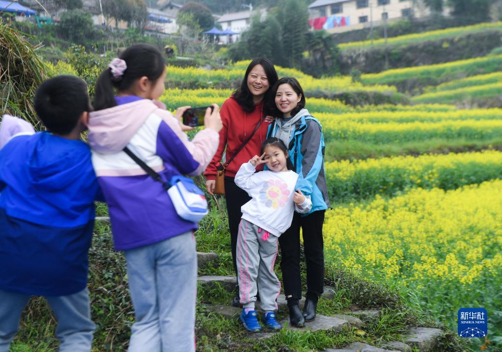 當日,浙江省建德市乾潭鎮胥嶺村開(kāi)啟首屆“花朝節”,市民和游客在胥嶺村觀(guān)賞油菜花,體驗胥嶺古道和“花朝市集”。