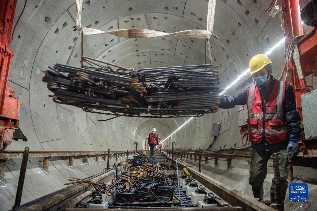近日,在武漢地鐵前川線(xiàn)工程現場(chǎng),工人們抓緊施工。前川線(xiàn)是武漢地鐵7號線(xiàn)北延線(xiàn)路,起于前川城區黃陂廣場(chǎng),止于園博園北站,是武漢市重要的客運走廊之一。