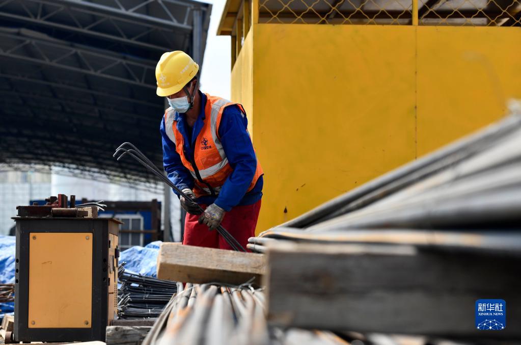 4月5日,工作人員進(jìn)行鋼筋加工。