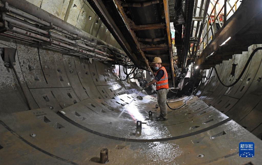 4月5日,工作人員清洗隧道管片。