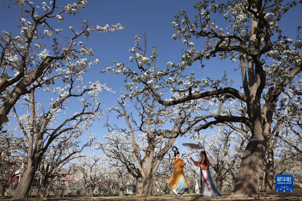近日,地處黃河上游的甘肅省蘭州市皋蘭縣什川鎮百年梨園的近萬(wàn)棵古樹(shù)進(jìn)入盛花期,滿(mǎn)園梨花怒放。受近期疫情影響,百年梨園暫時(shí)未對公眾開(kāi)放,為了滿(mǎn)足賞花需求,景區組織工作人員在梨園內進(jìn)行直播,邀請人們“云賞花”。
