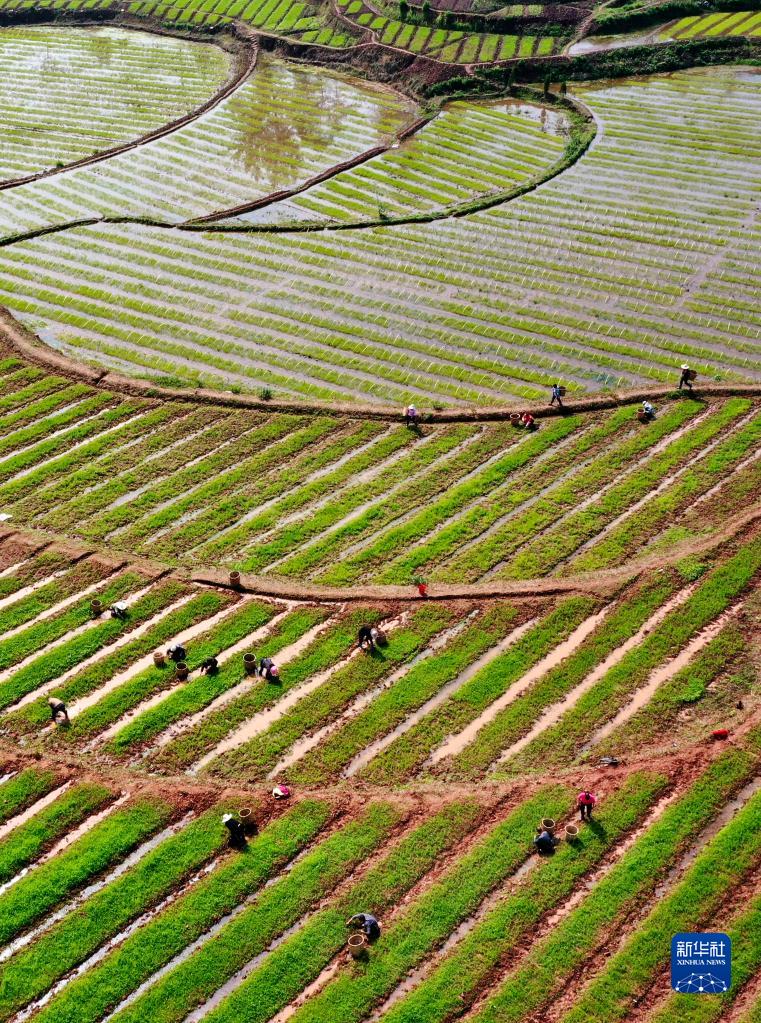 隨著(zhù)天氣回暖,農民搶抓農時(shí)開(kāi)展農事活動(dòng),春日田園一派生機勃勃的景象。