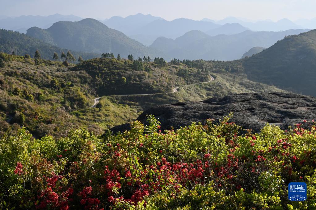 4月9日拍攝的五虎山國家森林公園風(fēng)景。