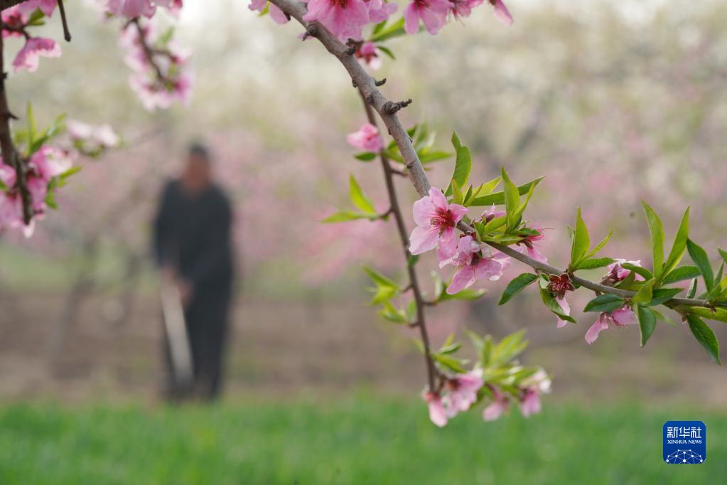 4月10日,農民在河北省邢臺市內丘縣官莊鎮一處果園內勞作。