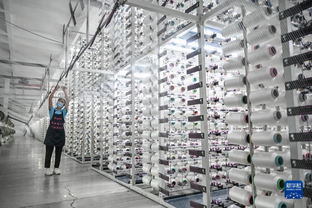 4月12日,在福建泉州石獅市的一家紡織企業(yè),工人在工廠(chǎng)里忙碌。