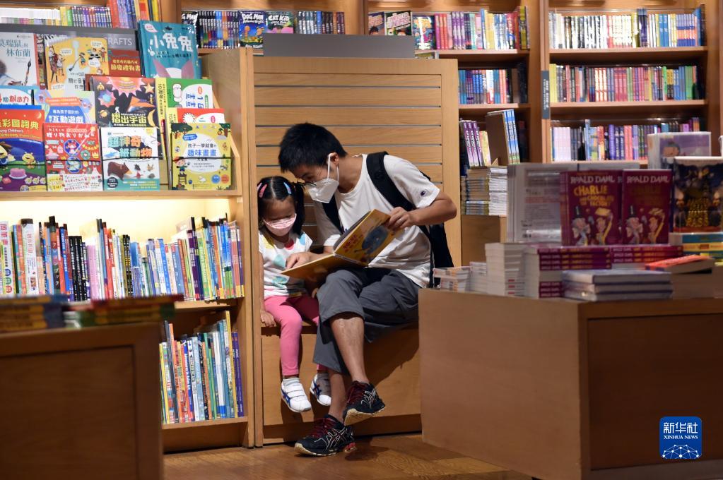 4月23日,在香港銅鑼灣誠品書(shū)店,一對父女享受閱讀時(shí)光。