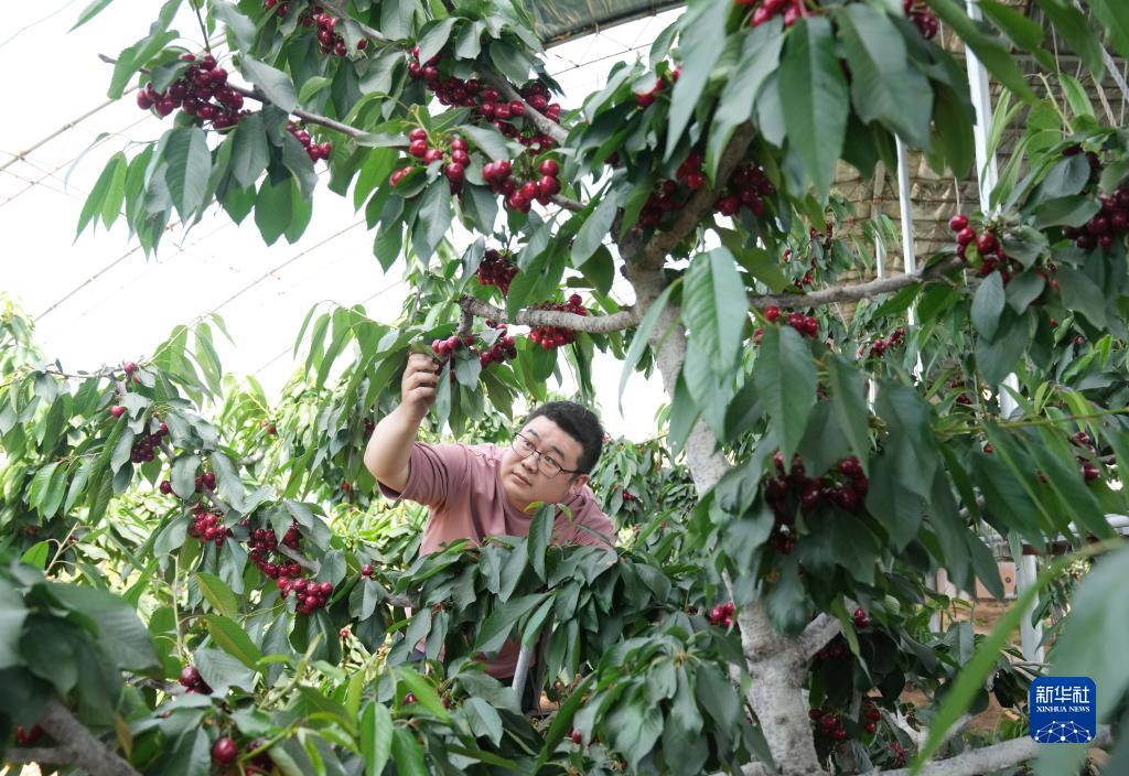 4月26日,秦皇島市山海關(guān)區石河鎮毛家溝村的果農在采摘櫻桃。