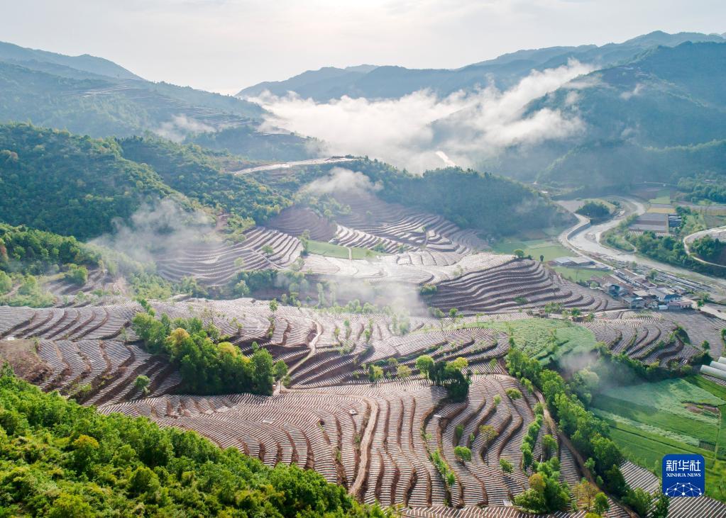 漢中市略陽(yáng)縣郭鎮譚家莊村綜合治理后的梯田(4月26日攝,無(wú)人機照片)。