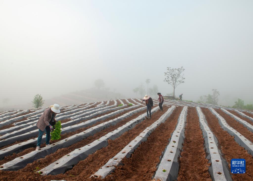 4月26日,漢中市略陽(yáng)縣郭鎮譚家莊村農民在田間勞作。