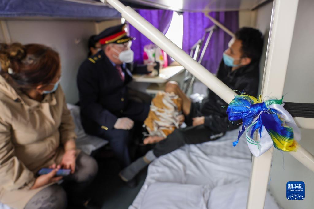 在開(kāi)往和田方向的“和田玉龍號”列車(chē)上,列車(chē)長(cháng)坡拉提汗詢(xún)問(wèn)特殊重點(diǎn)旅客身體狀況(4月27日攝)。列車(chē)員會(huì )在每一位特殊重點(diǎn)旅客座位上做標記,方便為其服務(wù)。