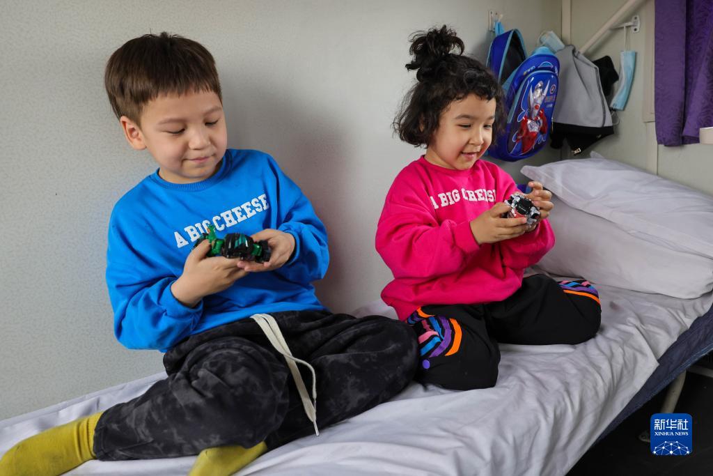 在開(kāi)往和田方向的“和田玉龍號”列車(chē)上,兩名小朋友在車(chē)廂硬臥上玩耍(4月27日攝)。