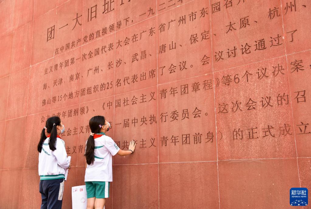 5月3日,廣州東風(fēng)東路小學(xué)的學(xué)生來(lái)到團一大廣場(chǎng)參觀(guān)。