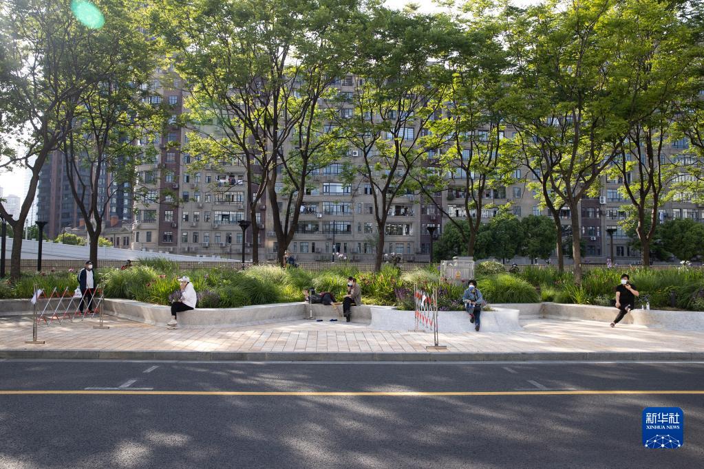 5月8日,在上海市黃浦區外灘街道北京里小區消殺期間,部分居民在臨時(shí)休息點(diǎn)休息。