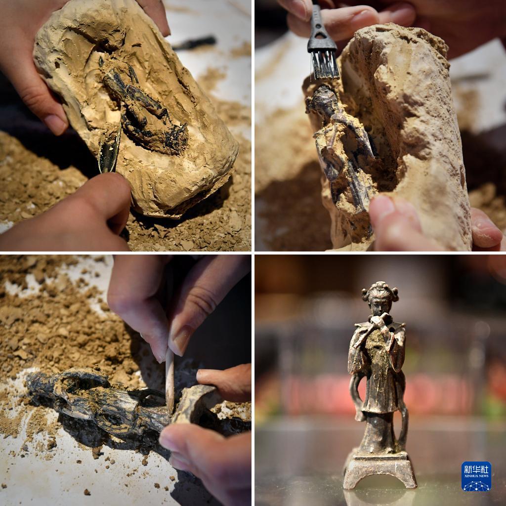 這是河南博物院推出的考古盲盒的“挖寶”過(guò)程(拼版照片,5月17日攝)。