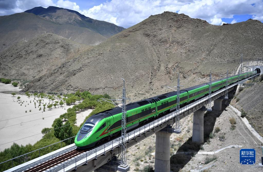 6月22日,復興號列車(chē)行駛在西藏山南境內。