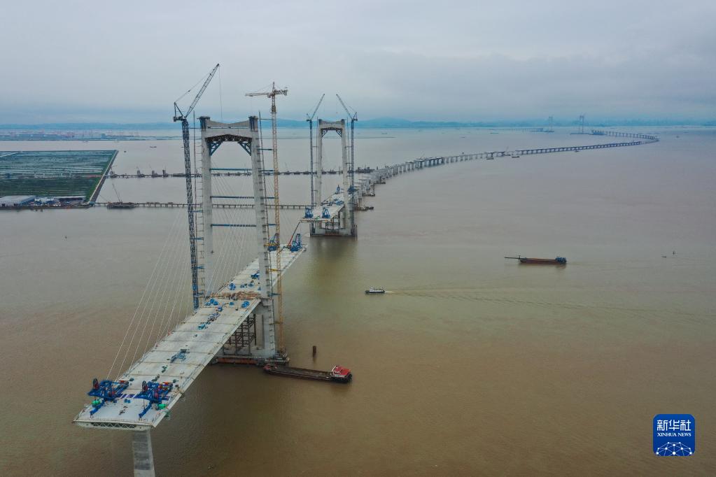 建設中的深中通道中山大橋(5月15日攝,無(wú)人機照片)。深中通道全長(cháng)24公里,集橋、島、隧、地下互通為一體,連接珠江口東西兩岸的深圳市和中山市,預計2024年建成通車(chē)。