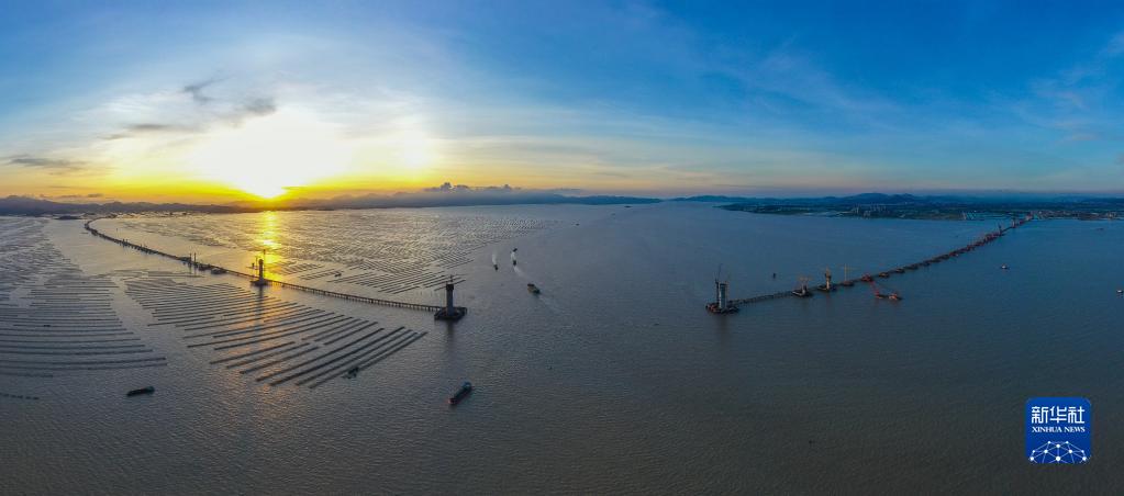 建設中的黃茅??绾Mǖ溃?月27日攝,無(wú)人機全景照片)。黃茅??绾Mǖ罇|起珠海市平沙鎮,西接江門(mén)市斗山鎮,橫跨珠江口崖門(mén)入??邳S茅海水域,線(xiàn)路全長(cháng)約31公里,預計2024年建成通車(chē)。