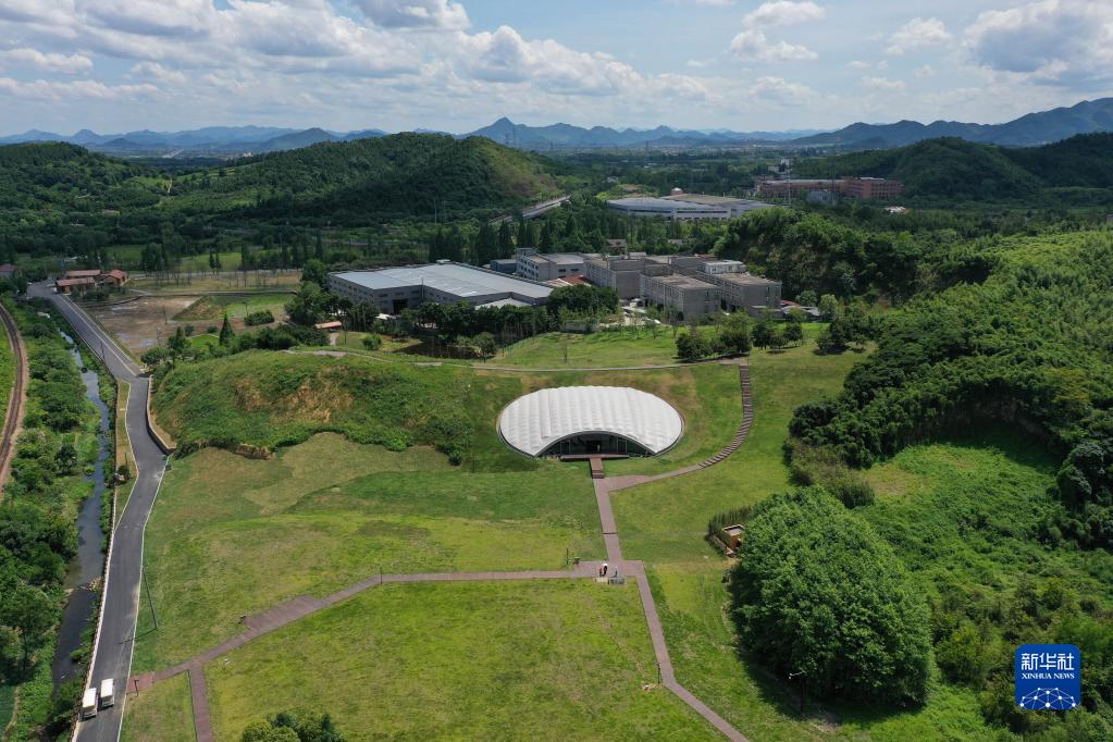 7月6日拍攝的良渚古城遺址老虎嶺遺址公園(無(wú)人機照片)。