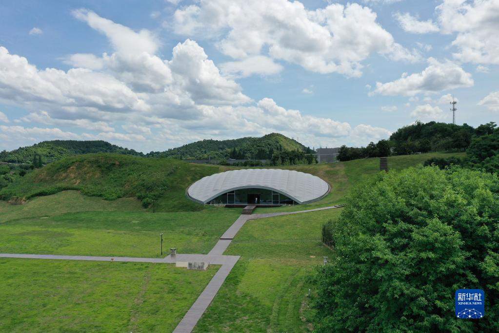 7月6日拍攝的良渚古城遺址老虎嶺遺址公園(無(wú)人機照片)。