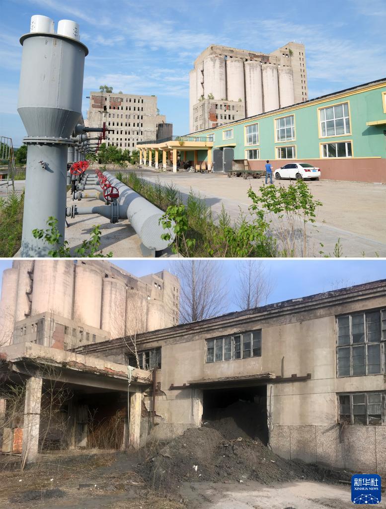 拼版照片:上圖是7月6日拍攝的老廠(chǎng)區一處閑置廢舊建筑改造成的VC·產(chǎn)業(yè)園廠(chǎng)房(新華社記者王建威攝);下圖是該閑置廢舊建筑原貌(資料照片)。新華社發(fā)